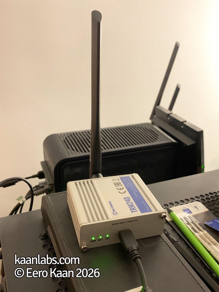 I’ve settled on a Teltonika TRM 240 4G modem here, a proper industrial LTE modem which would also be great to use in conjunction with a data plan. We’ll be using SMS only however.